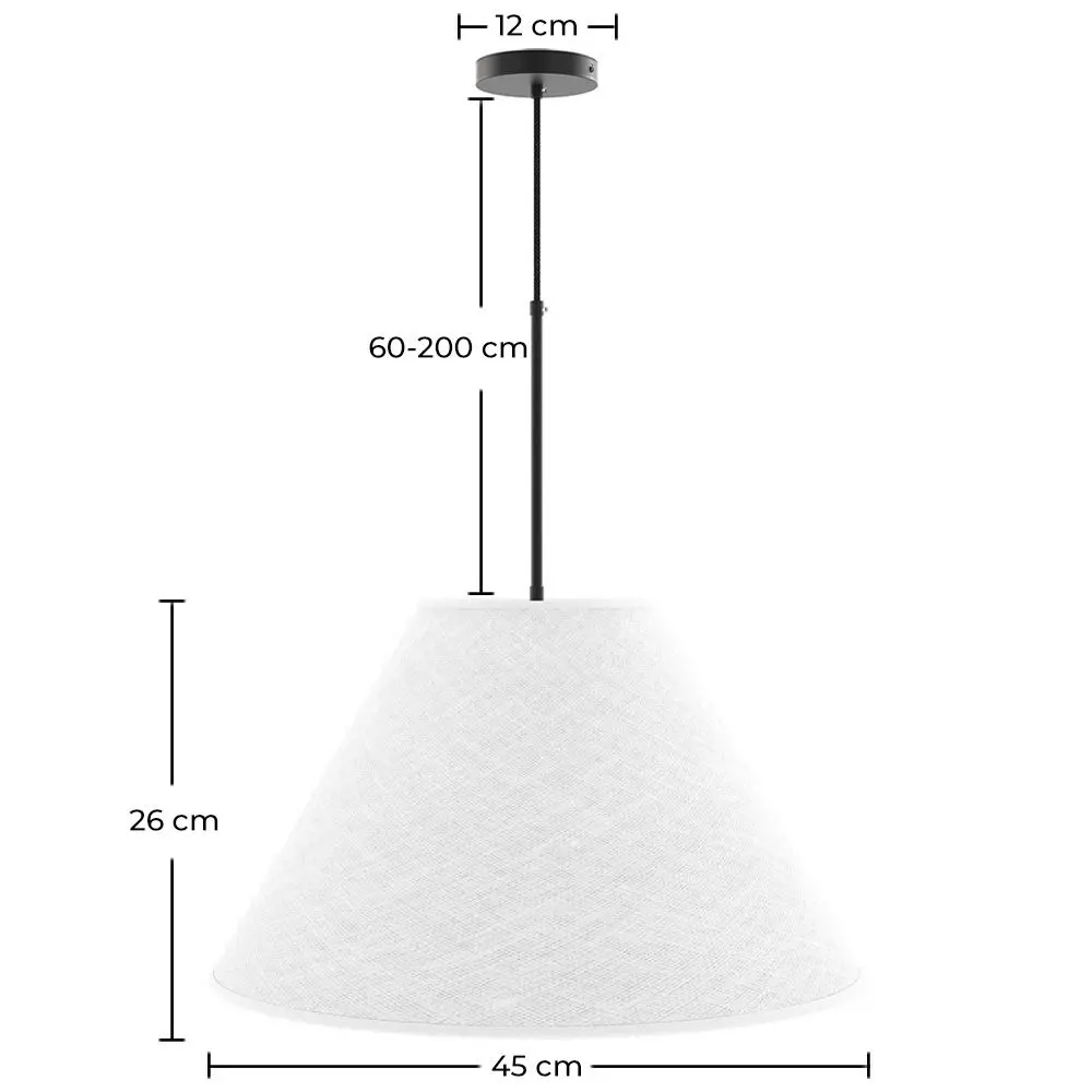 Verwandeln Sie jeden Raum mit unserer hängenden Deckenlampe, einem Designerstück, das Eleganz und Funktionalität vereint. Hergestellt mit einer langlebigen Metallstruktur und einem runden Stoffschirm, bietet diese Lampe warmes und gemütliches Licht, perfekt für die Schaffung intimer Atmosphären in Restaurants und Hotels. Die verstellbare Höhe ermöglicht eine einfache Anpassung an jede Umgebung, was diese Lampe zur idealen Wahl für die Platzierung über Esstischen macht. Fügen Sie Ihrer Dekoration einen Hauch von Raffinesse und Wärme hinzu mit dieser hängenden Lampe, die entworfen wurde, um in jedem Raum hervorzustechen.