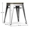 Sein robustes Metallgestell sorgt für Stabilität und Langlebigkeit, während der Holzsitz Komfort und authentischen Stil hinzufügt, der zu modernen und urbanen Umgebungen passt. Ideal für intensive Innenraumnutzung, ist dieser Hocker vielseitig und elegant.