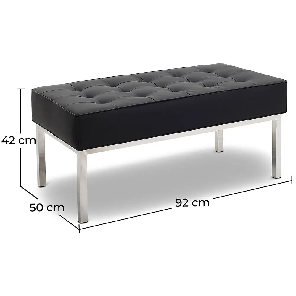 Sie ist in einer breiten Farbpalette erhältlich. Die Sitzbank steht auf Stahlbeinen, die perfekt zur Farbe der Lederpolsterung passen und verleiht ihr Modernität und Eleganz. Diese Zweisitzerbank ist sowohl breit als auch bequem und Sie werden sich auf ihr sehr entspannt fühlen.