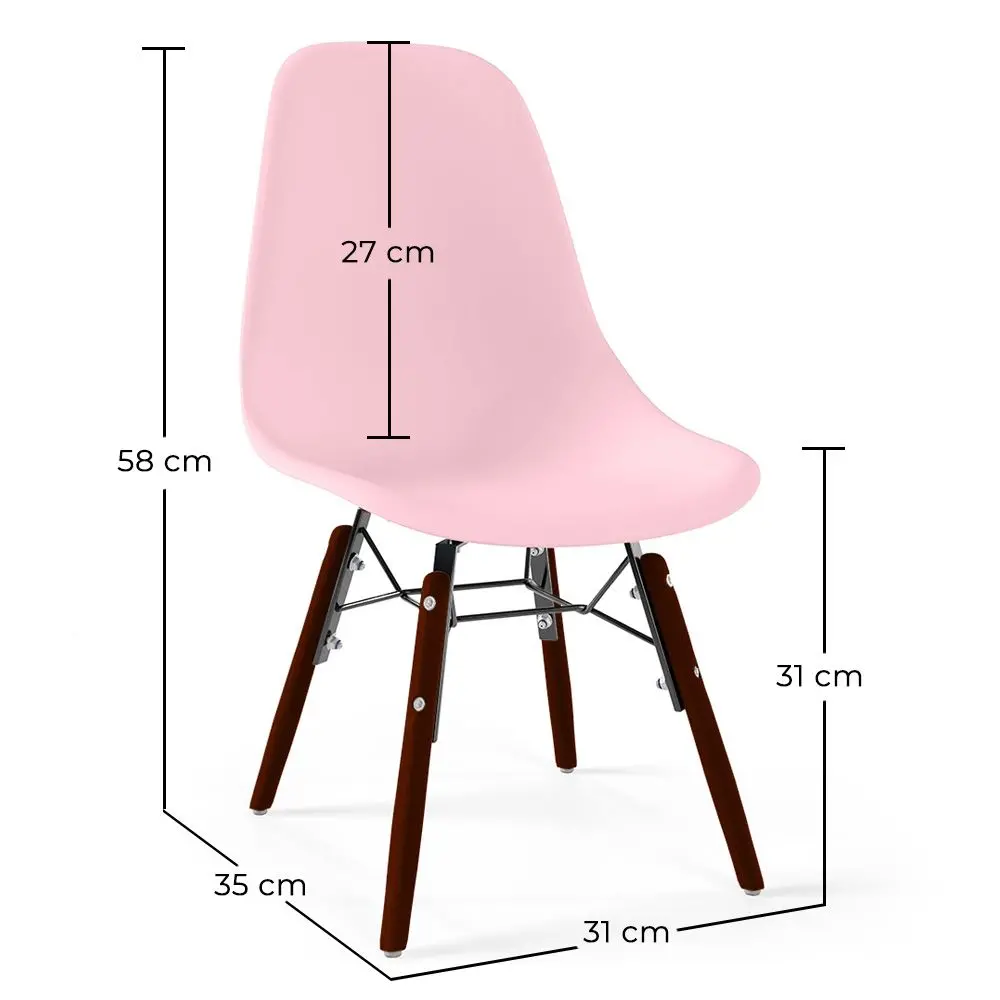Wenn Sie einen Kinderstuhl suchen, der Design, Ergonomie und Haltbarkeit vereint, ist dies die ideale Wahl. Inspiriert von einem ikonischen Stück Innenarchitektur bietet der Polypropylensitz eine bequeme und sichere Haltung, während die dunklen Holzbeine mit Metallverstärkung Stabilität und Widerstandsfähigkeit garantieren. Perfekt für jeden Kinderbereich und verleiht ihm einen eleganten und funktionalen Touch.