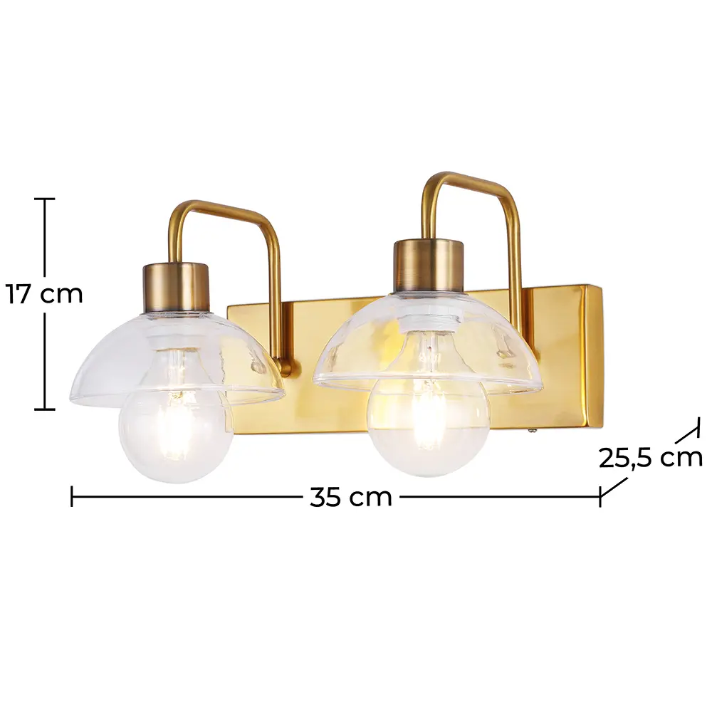 Diese Wandleuchte wurde aus Metall gefertigt, das in Gold oder Silber ausgeführt ist, und verleiht ihr ein edles Aussehen, das Ihr Dekor ergänzt. Es ist einfach einzurichten und funktioniert gut mit Edison-Lampen, die nicht in diesem Kauf enthalten sind. Der Glasschirm ist transparent und sorgt für warmes Licht.