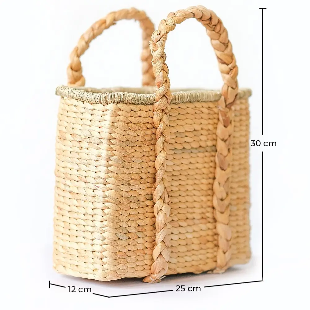 Dieser schöne Weidenkorb ist eine vielseitige und stilvolle Option, um Ihre Gegenstände zu Hause zu organisieren. Mit seinem handgewebten Design und geflochtenen Griffen verbindet er traditionelle Handwerkskunst mit einem modernen Touch. Durch seine kompakte Größe eignet er sich perfekt zur Aufbewahrung kleiner Gegenstände in jedem Raum, vom Wohnzimmer über das Schlafzimmer bis zum Badezimmer. Verwenden Sie ihn, um Zeitschriften, Spielzeug, Pflegeprodukte oder sogar als hübschen Topf für Ihre Lieblingspflanzen aufzubewahren. Die Qualität des Weidengeflechts gewährleistet Langlebigkeit und Stärke, während sein natürlicher und eleganter Look jedem Raum eine warme Note verleiht. Dieser Korb ist sowohl praktisch als auch dekorativ und wird sicherlich ein Highlight in Ihrer Wohnkultur sein.