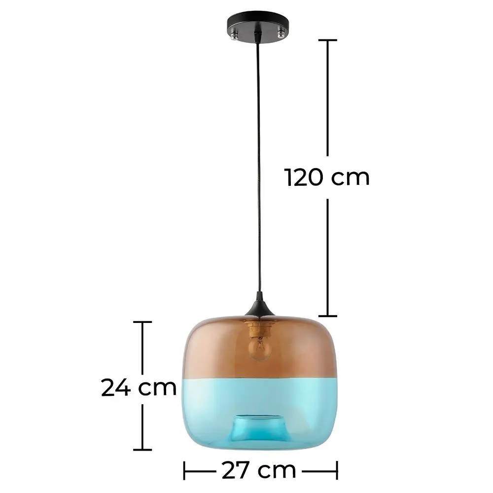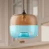 Wenn Sie nach einer Hängelampe suchen, die Ihre Inneneinrichtung erhellt, wird diese Lampe aus Glas Ihre Wahl sein. Der Kontrast zwischen der braunen Farbe und blaue Farbe des Glases gibt dieser Lampe einen ganz besonderen Retro-Touch.