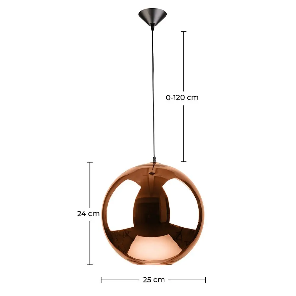 Die 25 cm Hängeleuchte ist aus galvanisch verchromtem Metall und ihre Lünette ist aus Kohlenstoffstahl. Sie können die 250cm Kabel Ihres Cooperlight Lampenschirms einstellen, sodass es für Räume mit hohen Decken und für Räume mit normaler Deckenhöhe funktioniert.