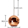 Die 40 cm Hängeleuchte ist aus galvanisch verchromtem Glas und ihre Lünette ist aus Kohlenstoffstahl. Sie können die 250cm Kabel Ihres Cooperlight Lampenschirms einstellen, sodass es für Räume mit hohen Decken und für Räume mit normaler Deckenhöhe funktioniert.