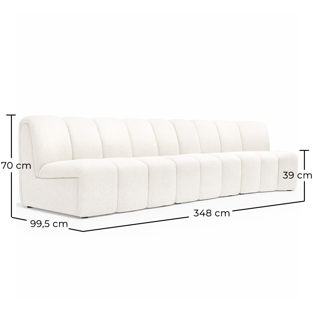 Schaffen Sie eine Atmosphäre zeitgenössischer Eleganz in Ihrem Hotel mit unserem modularen Sofa-Design mit geschwungenem Design. Bezogen mit hochwertigem weißen Bouclé und mit einer soliden Struktur aus Hartholz versehen, bietet dieses Sofa eine perfekte Balance zwischen Luxus und Minimalismus. Seine klaren Linien und sanften Kurven machen es zum Mittelpunkt eines jeden modernen Raums, während seine modulare Vielseitigkeit es ermöglicht, sich an verschiedene Konfigurationen anzupassen. Ideal für Empfangsbereiche, Wartezimmer oder Luxussuiten, ist dieses Sofa ein Statement-Stück, das selbst Ihre anspruchsvollsten Gäste beeindrucken wird.
