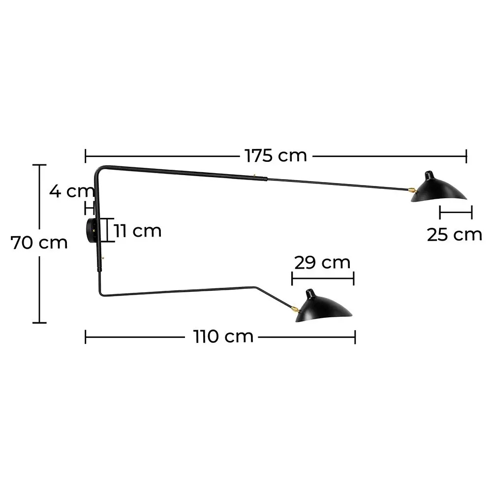Die MRZ-R2C Wandlampe besteht aus zwei Armen mit zwei drehbaren Schirmen, die Ihnen ermöglicht, die Ausbreitung des Lichts an die gewünschte Stelle zu steuern.