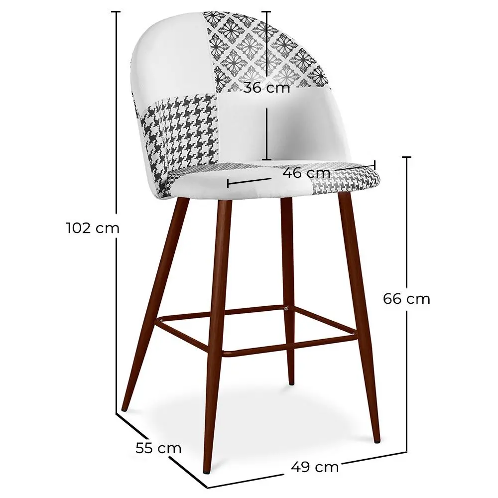 Suchen Sie einen stilvollen skandinavischen Barhocker für Ihre Küche oder Ihr Wohnzimmer? Sie lieben modernen Stil und Eleganz? Bennett Max ist die richtige Wahl! Interessantes schwarz-weißes Design kombiniert mit Sitzkomfort, ja das ist der Patchwork-Thekenhocker. Der untere Teil besteht aus Metall. Der Oberteil wird durch eine weiche Polsterung aus hochwertigem Weiß und Schwarz ergänzt. Der Stoffbarhocker sieht elegant aus, ist leicht zu pflegen und langlebig. Der bequeme Sitz und die Rückenlehne schaffen einen einzigartigen Platz für Sie.