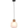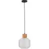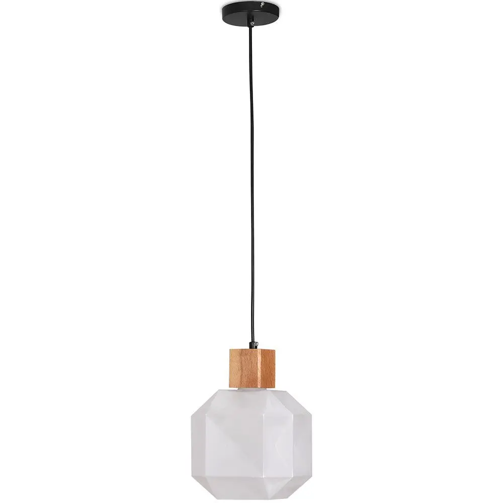 Diese geometrische Hängelampe aus Glas und Holz hat ein auffälliges Design. Er verleiht jedem Raum, in dem Sie ihn aufstellen, ein elegantes und kühnes Aussehen. Der prismenförmige Glasschirm bildet einen schönen Kontrast zu dem natürlichen Element des Holzsockels. Verschönern Sie damit Ihr Büro oder beeindrucken Sie damit Ihre Gäste zu Hause!