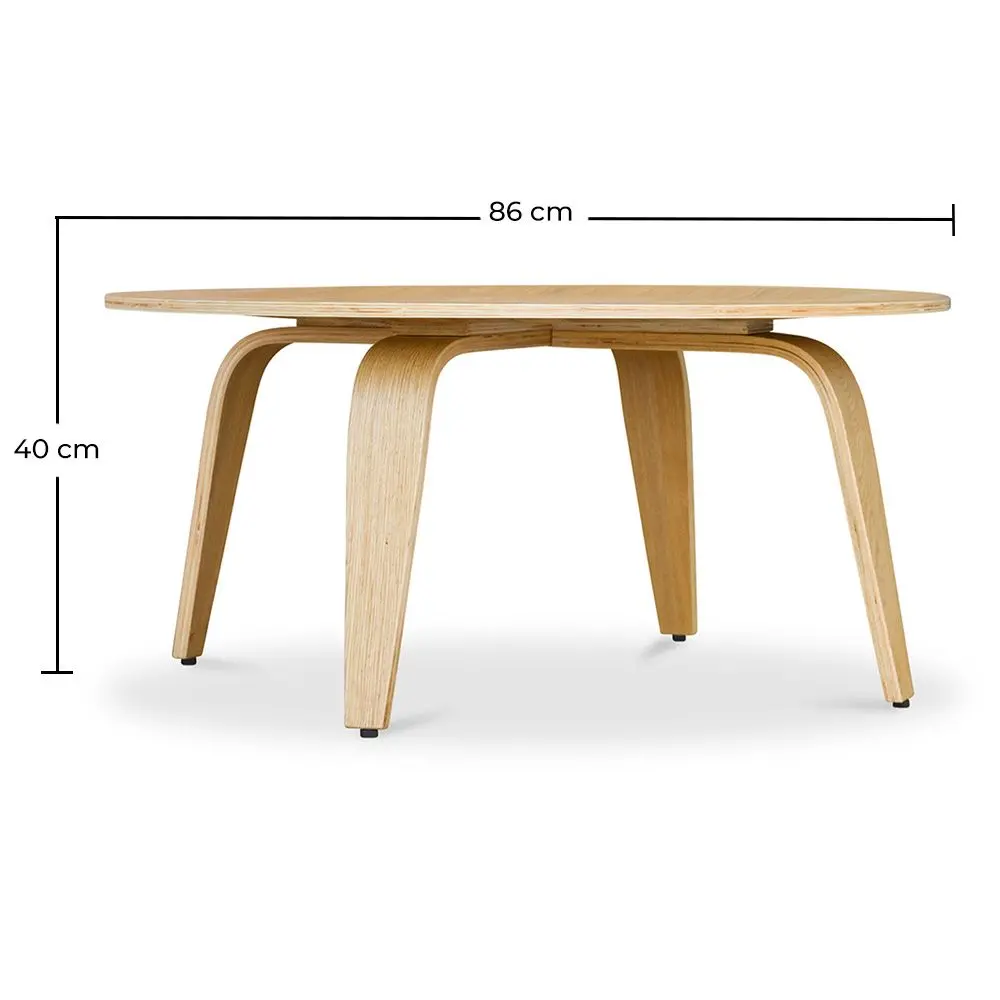 Sperrholz Couchtisch. Dieser einfache runde Tisch ist leicht um die Außenseite erhöht und ist komplett aus Holz.