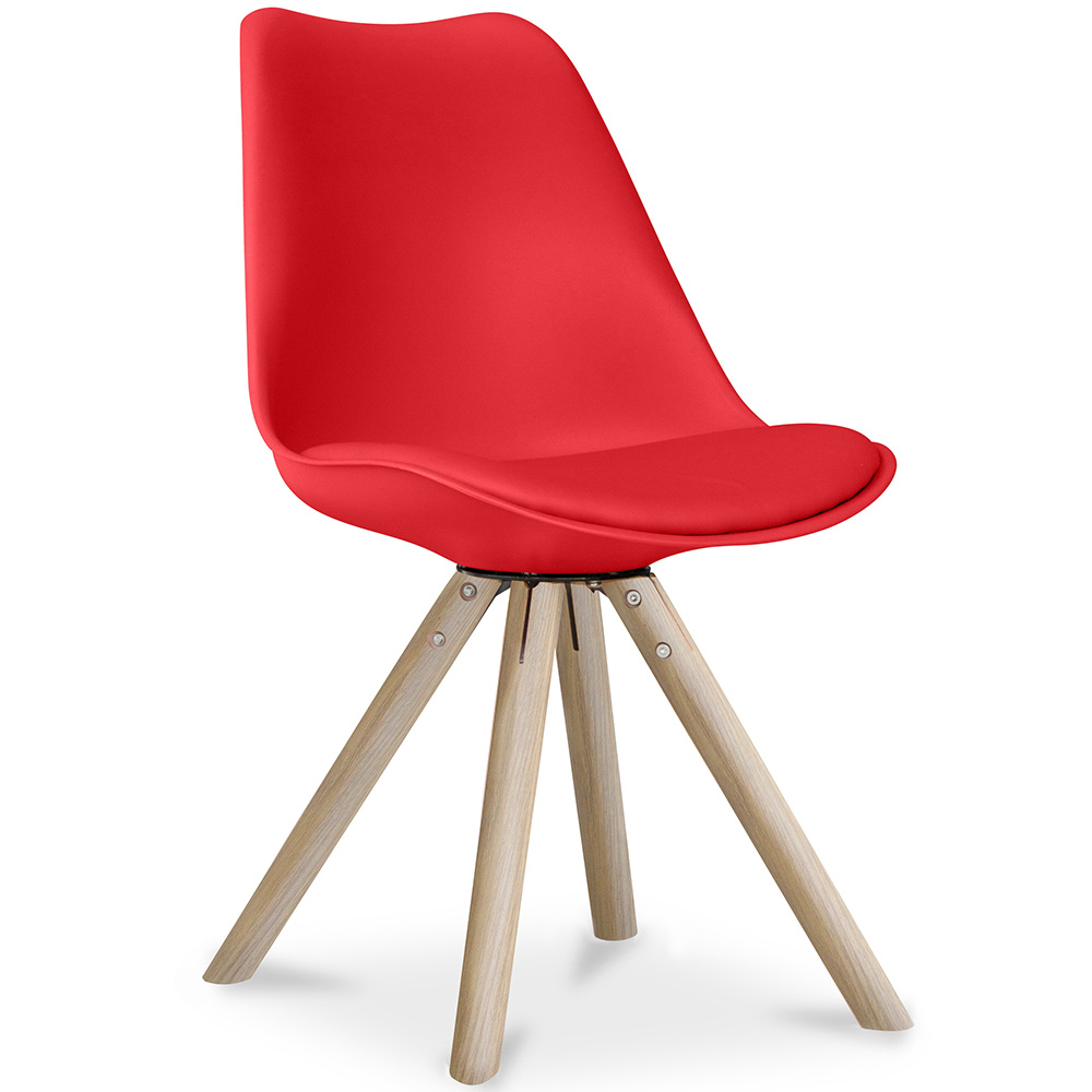 Sein Sitz ist aus PP und hat einen Polsterkissen aus Kunstleder, um Ihnen Komfort zu verleihen. Seine Holzbeine sind aus massiver Buche und bieten Stabilität und Festigkeit.