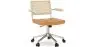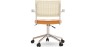 Innovation trifft auf Komfort in diesem modernen drehbaren Bürostuhl. Dieser Designstuhl verbindet den Charme von Rattan in der Rückenlehne mit der Raffinesse des mit veganem Leder bezogenen Sitzes und schafft so ein Möbelstück, das gleichermaßen funktional und ästhetisch ansprechend ist. Perfekt für moderne und zeitgenössische Büros ermöglicht die sanfte Drehfähigkeit und die hochwertigen Rollen eine mühelose Mobilität, die für die Produktivität am Arbeitsplatz unerlässlich ist. Die Höhenverstellungsoption stellt sicher, dass jeder Nutzer den Stuhl nach seinen individuellen Vorlieben anpassen kann und somit ein komfortables und ergonomisches Arbeitsumfeld schafft.