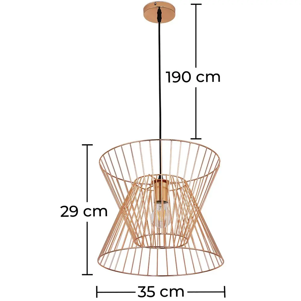 Zweifellos werden Sie mehr als ein paar Minuten brauchen, um die Handwerkskunst dieser schönen Design-Hängelampe zu bewundern, die sich ideal eignet, um jedem Raum einen Hauch von Glamour zu verleihen. Das offene Gerüst besteht aus galvanisiertem Eisen. Es hat ein langes verstellbares Kabel und ist mit 29 cm x 35 cm großzügig proportioniert. Die Lampe im Retro Stil beleuchtet Ihren Raum aus jedem Winkel und eignet sich perfekt für die Mitte Ihrer Decke oder als Merkmal über einem bestimmten Möbelstück.