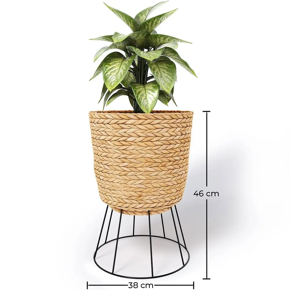 Entdecke die natürliche Harmonie mit diesem bezaubernden runden Bodenpflanztopf, hergestellt aus einem Gewebe aus natürlicher Wasserschilf in Naturfarbe und betont durch eine schwarze Metallstruktur, alles auf einer Höhe von 46 cm. Das Wasserschilf, geschickt um den Pflanztopf gewebt, fügt eine warme Textur und ein gemütliches Gefühl hinzu, während die schwarze Metallstruktur Haltbarkeit und einen modernen Touch gewährleistet. Mit einer Höhe von 46 cm wird dieser Pflanztopf zur perfekten Leinwand, um die Schönheit deiner Pflanzen hervorzuheben und eine Fusion von natürlicher und zeitgenössischer Eleganz zu bieten, die die Ästhetik jeden Raums erhöht.