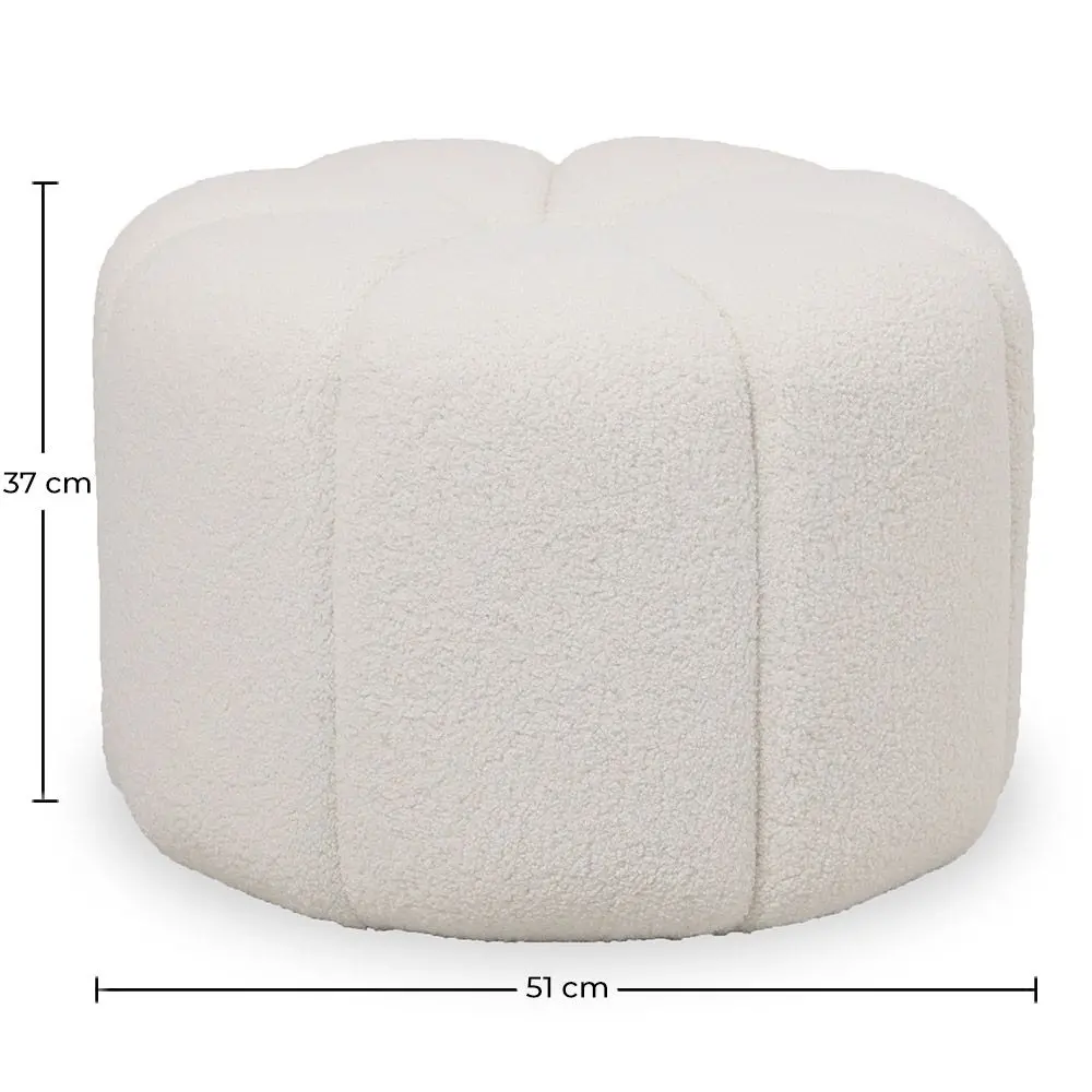 Erleben Sie Komfort und Stil mit unserem Hocker, bezogen mit Bouclé-Stoff, der ein geschwungenes und minimalistisches Design aufweist. Hergestellt mit hochwertigem Schafswollstoff, fügt dieser Hocker Ihrem Raum eine Note von Eleganz und Raffinesse hinzu. Sein minimalistisches Design macht ihn perfekt für jede Umgebung, egal ob im Wohnzimmer, Schlafzimmer oder Büro. Neben seiner dekorativen Funktion gewährleistet seine qualitativ hochwertige Struktur Haltbarkeit und Komfort. Entdecken Sie Luxus und Komfort mit diesem Hocker, der Ihren Raum in einen gemütlichen und eleganten Ort verwandeln wird.