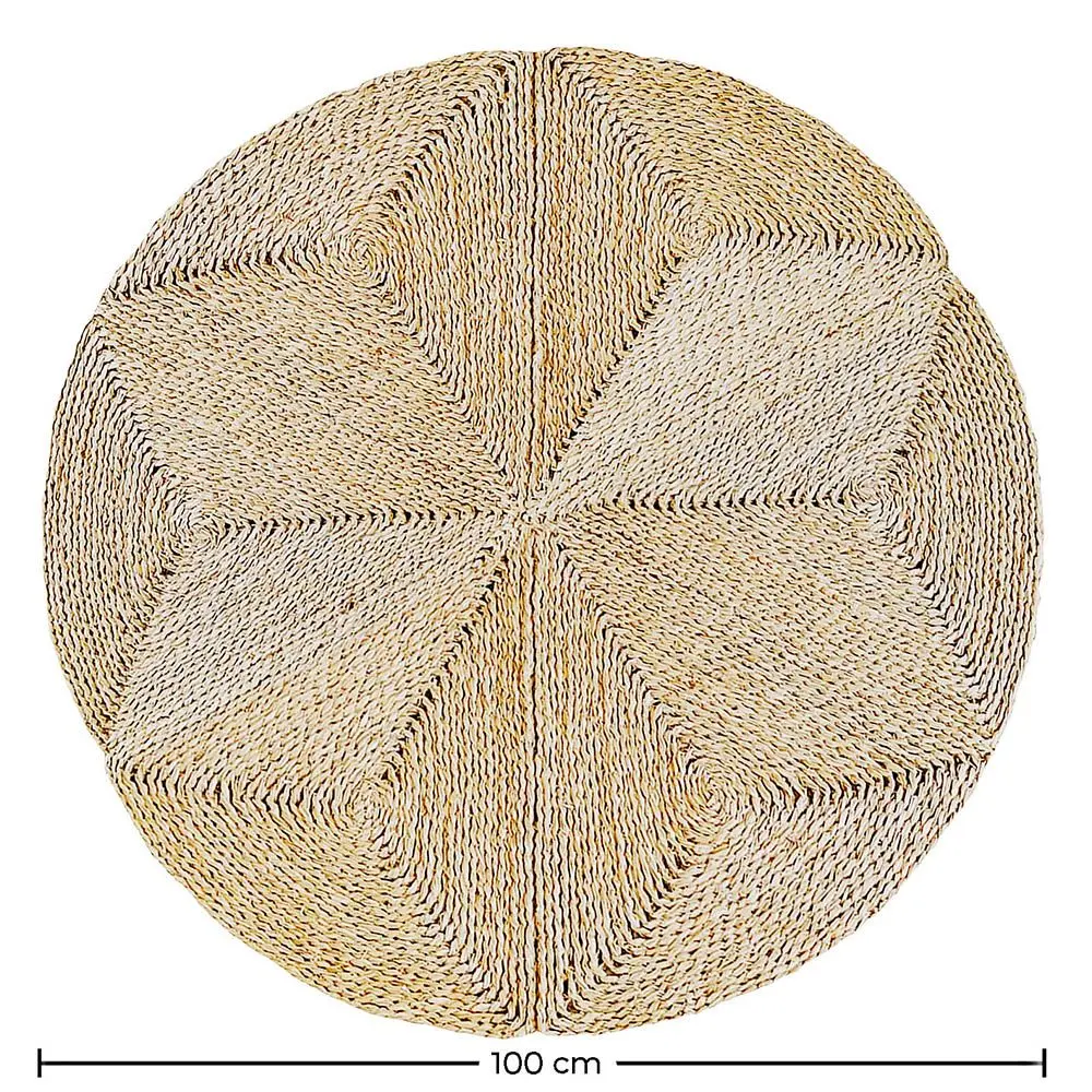 Der runde Juteteppich Ubba ist ein ideales Dekorationsstück, das aus hochwertigen Jutefasern gefertigt ist und Schönheit und Langlebigkeit vereint. Handgewebt präsentiert der Teppich bohemianische Muster und geometrische Details, die ihm einen handgefertigten und authentischen Stil verleihen. Mit einem Durchmesser von 100 cm eignet sich dieser runde Teppich ideal für jeden Raum, in dem Sie einen Hauch von Boho-Stil hinzufügen möchten. Neben seiner nachhaltigen Wahl, da Jute ein umweltfreundliches und erneuerbares Material ist, ermöglicht sein vielseitiges Design eine einfache Kombination mit verschiedenen Dekorationsstilen, von bohemianisch über rustikal bis hin zu zeitgenössisch. Verleihen Sie Ihrem Zuhause mit diesem charmanten runden Teppich eine warme Note.
