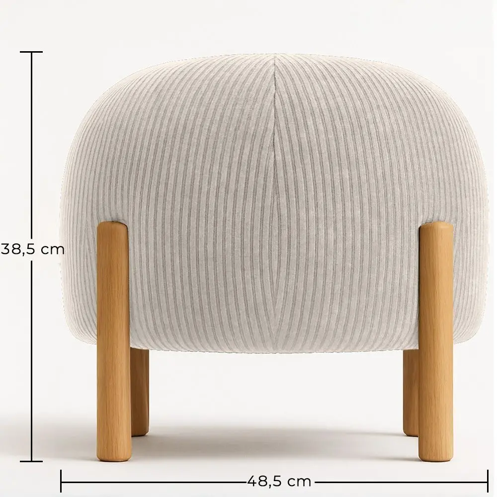 Fügen Sie Ihrem Zuhause mit diesem runden Pouf, der 38,5 Zentimeter hoch ist, eine Prise Stil und Komfort hinzu. Mit einem luxuriösen Kord bezogen und mit Beinen aus naturbelassenem Holz, ist er perfekt für jeden Raum, vom Wohnzimmer bis zu den Schlafzimmern. Sein kompaktes und elegantes Design macht ihn für alle Altersgruppen geeignet und bietet einen bequemen und attraktiven zusätzlichen Sitzplatz für Erwachsene und Kinder. Dieser Pouf ist eine ausgezeichnete Wahl, um eine gemütliche und funktionale Atmosphäre in jeder Ecke Ihres Zuhauses zu schaffen.