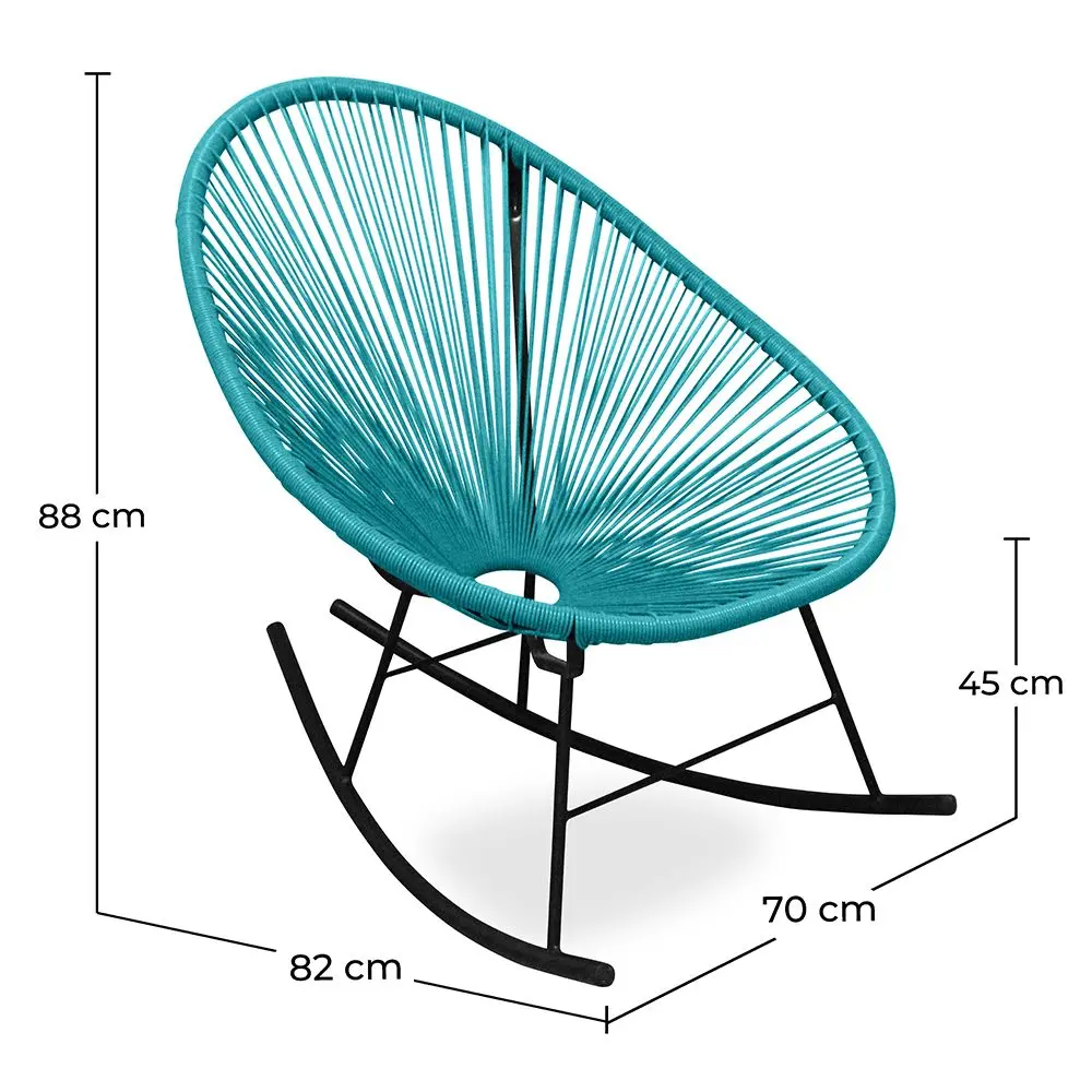 Der legendäre Acapulco-Stuhl wurde erneuert, um ihn in einer Schaukelstuhl-Version zu präsentieren. Dieser Stuhl, der sowohl für den Innen- als auch für den Außenbereich geeignet ist, ist mit einer Stahlstruktur in Schwarz und einem Kunststoff-Seilsitz gefertigt. In diesem bequemen Acapulco-Stuhl können Sie stundenlang schaukeln, während Sie sich sonnen oder ein gutes Buch lesen.