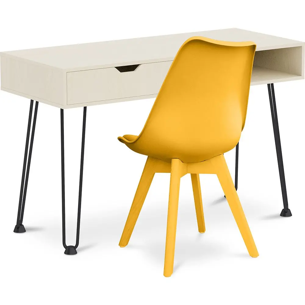 Schaffen Sie sich Ihre perfekte Arbeitsumgebung. Dies ist ein Möbelset für Ihr Arbeitszimmer, das keine Wünsche mehr offen lässt. Mit unserem geräumigen Hakon-Holzschreibtisch, seinem praktischen Stauraum und den modernen Haarnadelbeinen erhalten Sie sowohl Design als auch Qualität, die Ihre Arbeit in jeder Zeit unterstützt. Das Set wird in Kombination mit einem Brielle -Stuhl im skandinavischen Design samt Kissen geliefert.