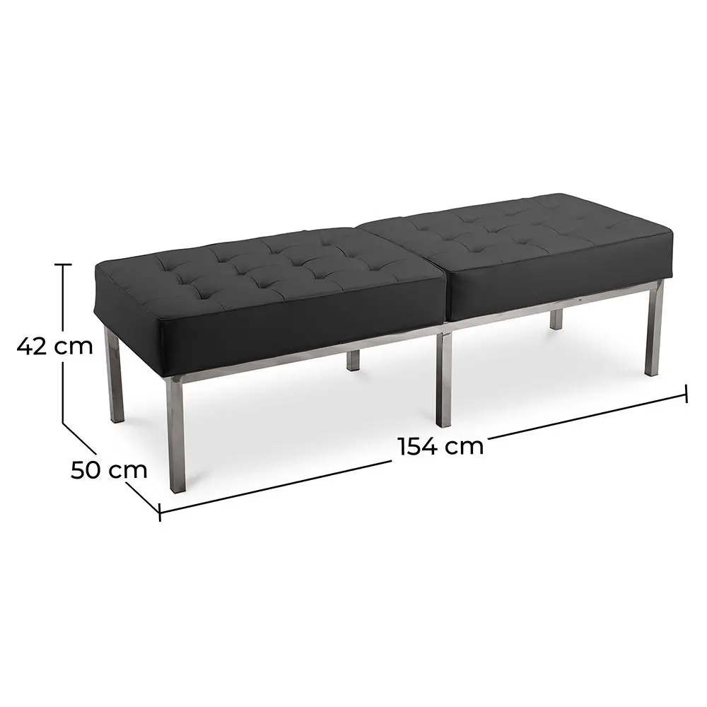 Sie ist in einer breiten Farbpalette erhältlich. Die Sitzbank steht auf Stahlbeinen, die perfekt zur Farbe der Lederpolsterung passen und verleiht ihr Modernität und Eleganz. Diese Dreisitzerbank ist sowohl breit als auch bequem und Sie werden sich auf ihr sehr entspannt fühlen.