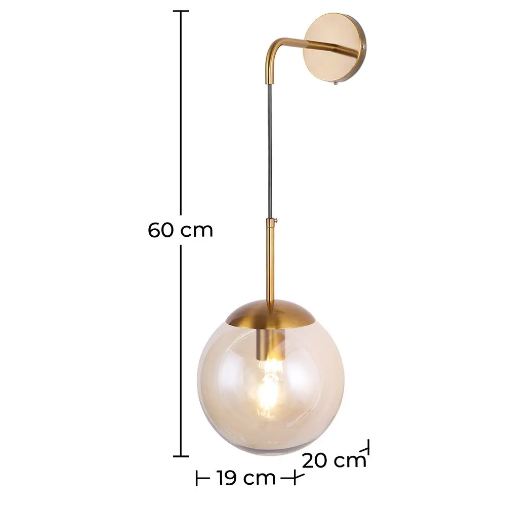 Die edle Designlampe bietet dank des Glasschirms eine gemütliche Beleuchtung und kann mit jeder Lampenfarbe verwendet werden. Für unterschiedliche Wandhöhen ist das Metallrohr voll einstellbar. Der Lampenhalter ist aus Metall gefertigt, ebenso das Wanddach.