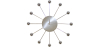 Diese Spinnen Wanduhr besteht aus zwölf kleinen silbernen Kugeln, die wie Satelliten um einen großen zentralen Punkt kreisen, auf dem die Zeiger dieser Wanduhr angebracht sind. Das Metall reflektiert das Licht. Nicht nur, dass sie Ihnen sagt wie spät ist es, sie ist auch ein echtes Dekorationsobjekt, das Ihr Wohnzimmer, Ihre Küche oder ihr Schlafzimmer aufhellen wird.