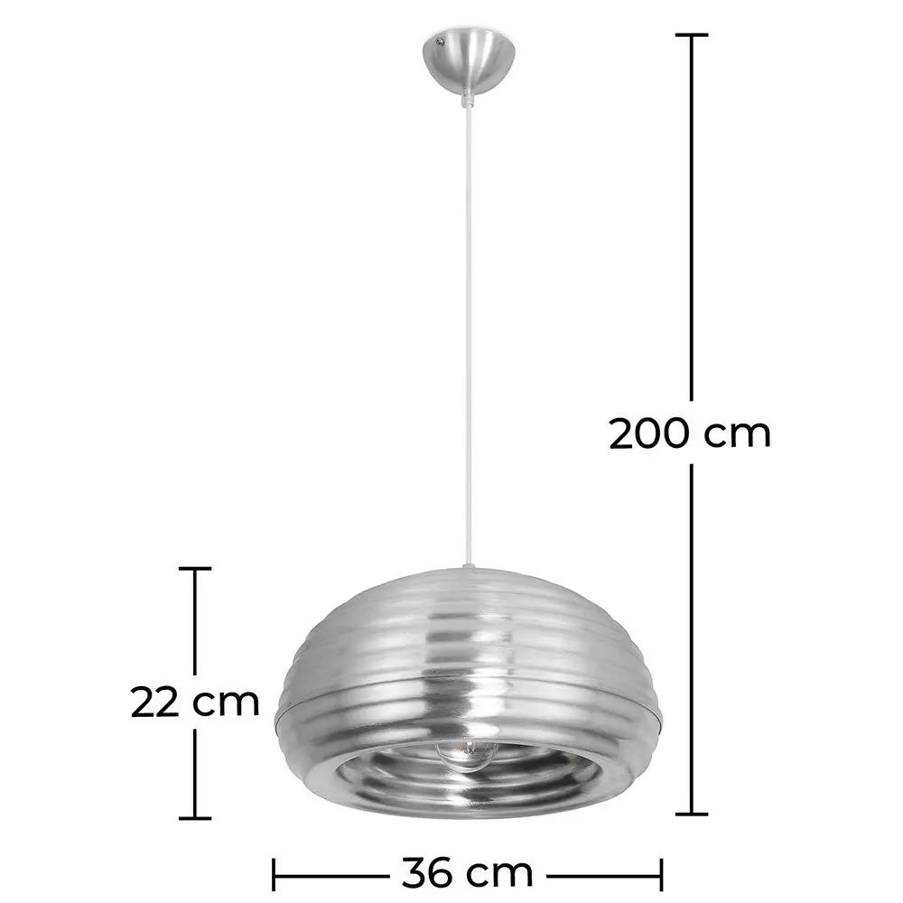 Diese dekorative Hängeleuchte wurde im Jahre 1964 entwickelt und einnert an den Charme der damaligen Zeit. Ihr zeitloses Design wird so Ihre modernen Möbeln optimal ergänzen. Der Lampenschirm ist komplett aus Aluminium, das ihren trendigen Stil noch bestätigt und sie emittiert starkes, direktes Licht von großer Qualität.