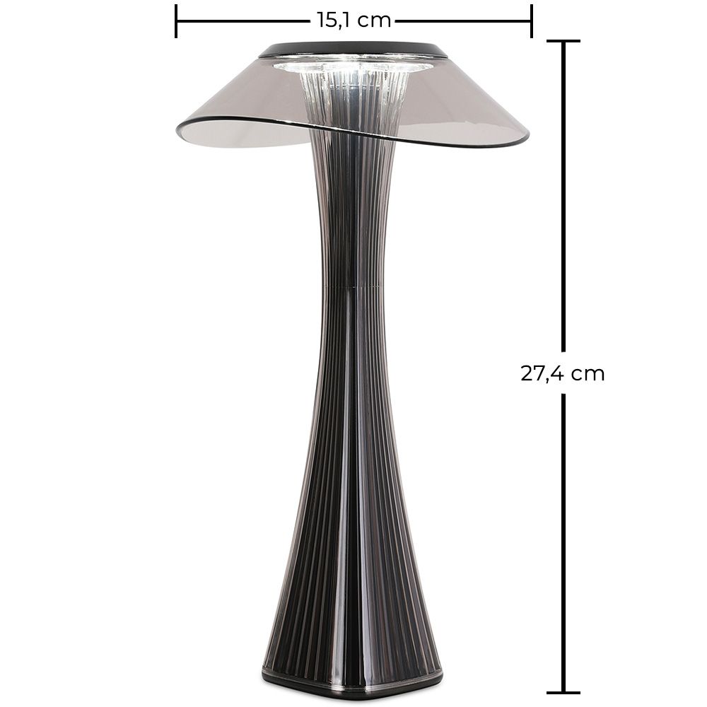 Sie funktioniert kabellos dank ihres 1200 mAh aufladbaren Akkus und bietet eine Autonomie von 3 bis 10 Stunden, abhängig vom Helligkeitsniveau. USB-Laden wird in etwa 4 Stunden abgeschlossen und beinhaltet eine rote LED-Anzeige, die sich automatisch ausschaltet, wenn der Akku vollständig geladen ist.