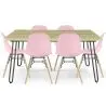 Erneuern Sie Ihr Zuhause oder Ihr Gastronomiebetrieb mit diesem modernen und funktionalen Esszimmer-Set. Der Holztisch (90 cm hoch x 150 cm breit) mit Metallbeinen verleiht einen industriellen und eleganten Touch. Die 6 skandinavischen Stühle kombinieren Holz- und Metallbeine mit einem ergonomischen Polypropylen-Sitz und bieten Komfort und Stil.