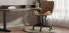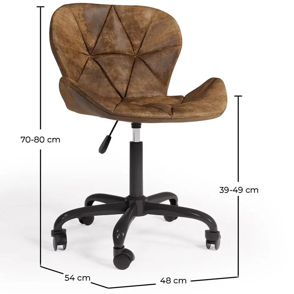 Tauchen Sie in Komfort und Eleganz ein mit diesem Bürostuhl im Vintage-Design. Sein Bezug aus veganem Leder ist nicht nur eine ethische Wahl, sondern verleiht auch Ihrem Arbeitsplatz einen Hauch von Luxus. Die glatten Rollen sorgen für mühelose Mobilität und ermöglichen es Ihnen, sich problemlos zwischen Aufgaben zu bewegen. Die verstellbare Höhe in Kombination mit der ergonomischen Rückenlehne gibt Ihnen die volle Kontrolle über Ihre Arbeitsposition und gewährleistet eine bequeme und gesunde Haltung. Die schwarze Metallbeinstruktur ist nicht nur robust und langlebig, sondern fügt auch einen Hauch von Modernität zur Gesamtästhetik des Stuhls hinzu. Erleben Sie die perfekte Fusion von Funktionalität und Stil in jedem Arbeitsmoment mit diesem außergewöhnlichen Bürostuhl.