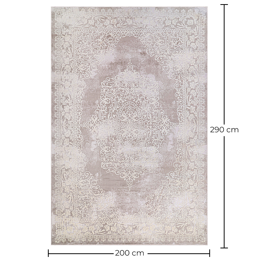 Dieser großzügig dimensionierte Teppich aus Polyester und Baumwolle, der 200cm x 290cm misst, ist die perfekte Wahl für diejenigen, die Stil und Funktionalität in ihrem Zuhause vereinen möchten. Polyester ist bekannt für seine Langlebigkeit und leichte Reinigung, was sicherstellt, dass dieser Teppich seine Schönheit lange behält. Sein klassisches Design zeigt ein komplexes Blumenmuster, das jedem Raum eine Note von Eleganz und Raffinesse verleiht. Ob Sie ihn im Wohnzimmer, Schlafzimmer oder Flur platzieren, dieser Teppich wird Ihrem Zuhause eine Note von Wärme und Komfort verleihen und es zu einem gemütlichen Raum für die ganze Familie machen.