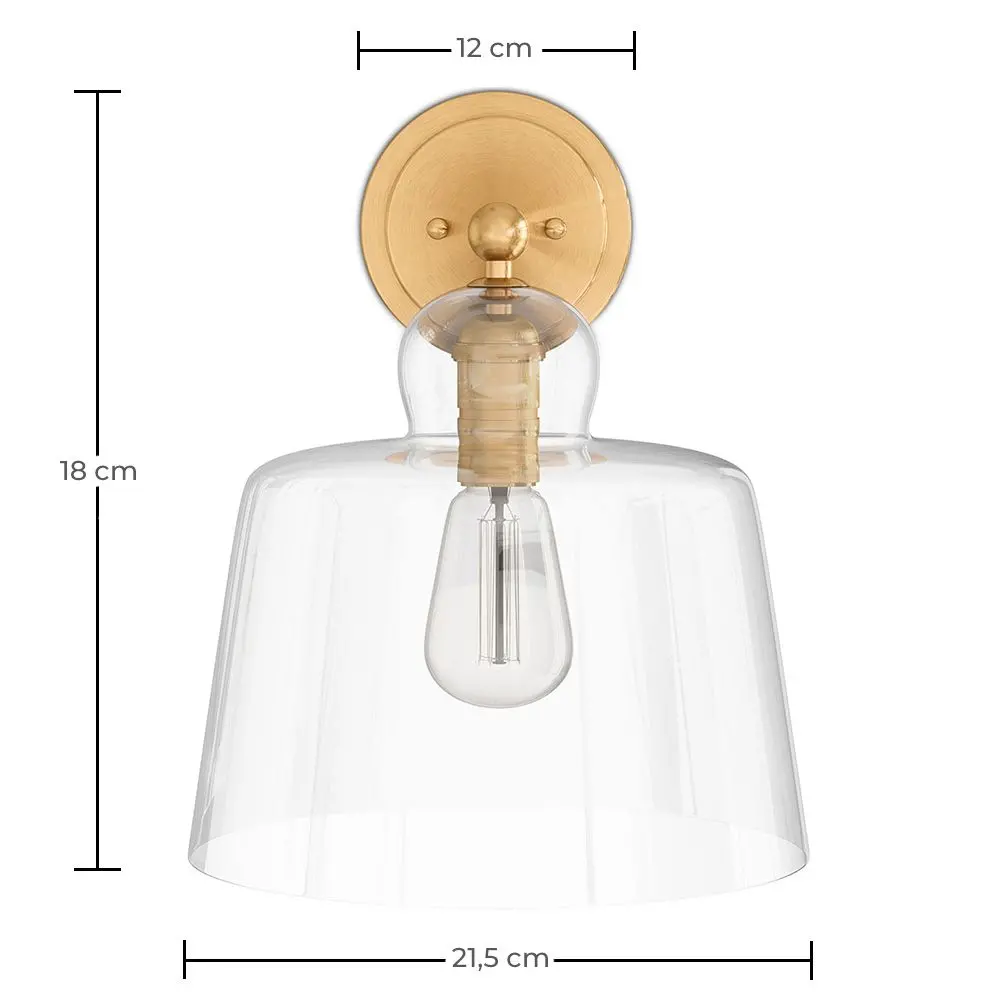 Die Wandlampe Senda ist perfekt als Schlafzimmerbeleuchtung, Flurlampe oder Badezimmerbeleuchtung geeignet. In Luxushotels, Restaurant und Büros sorgt sie für die gewisse Eleganz. Gefertigt aus hochwertigem goldfarbenem Metall sorgt der klassische Lampenschirm aus Glas dafür, dass sie zu einem echten Hingucker wird. Diese elegante Lampe sorgt für ein warmes, wohliges Licht, welches zum Verweilen einlädt.