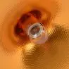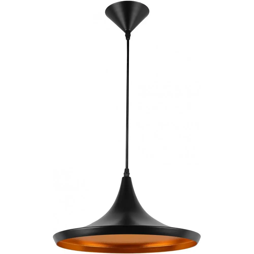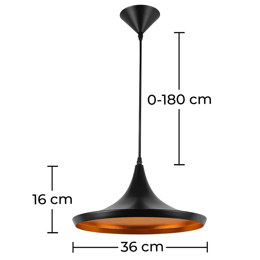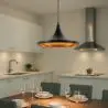 Das ausgetretene Messing des Exterieurs schafft eine schwarze Fläche, die einen Gegensatz zu dem warmen, goldenen Inneren bildet. Dieses kreative Design bietet direktes Licht und kann eine künstlerische Ergänzung zu jedem stilvollen Rahmen sein. Diese Hängeleuchte gibt es auch in einem weißen Exteriour.