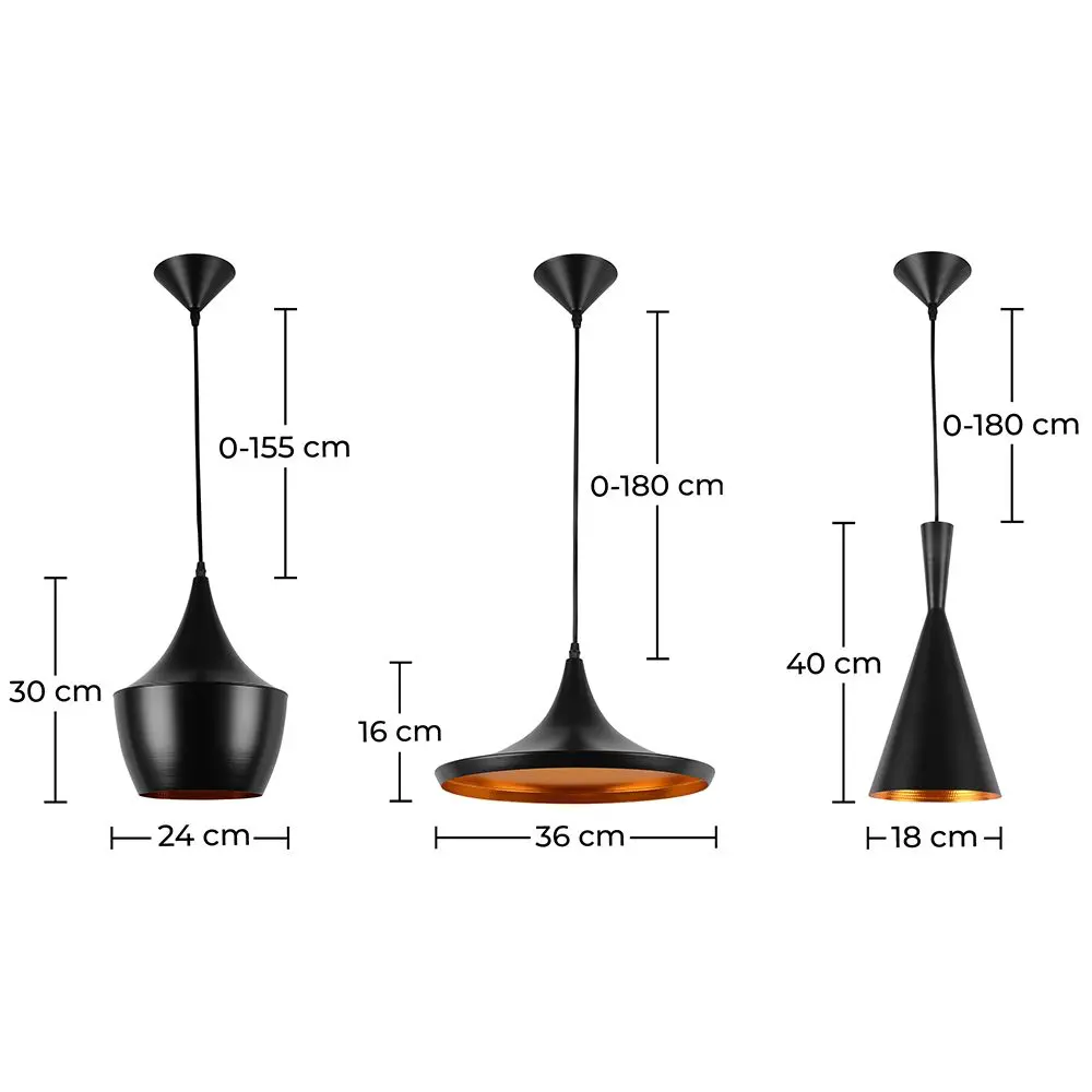 Dieses Set bestand aus 3 Pendelleuchten, die vom Beat Shade-Design inspiriert wurden und sich ideal für die Beleuchtung der Theke einer Küche oder des Esstisches eignen. Dank der Kabellänge können Sie jede Lampe auf eine andere Höhe einstellen oder die drei auf dieselbe Höhe ausrichten.