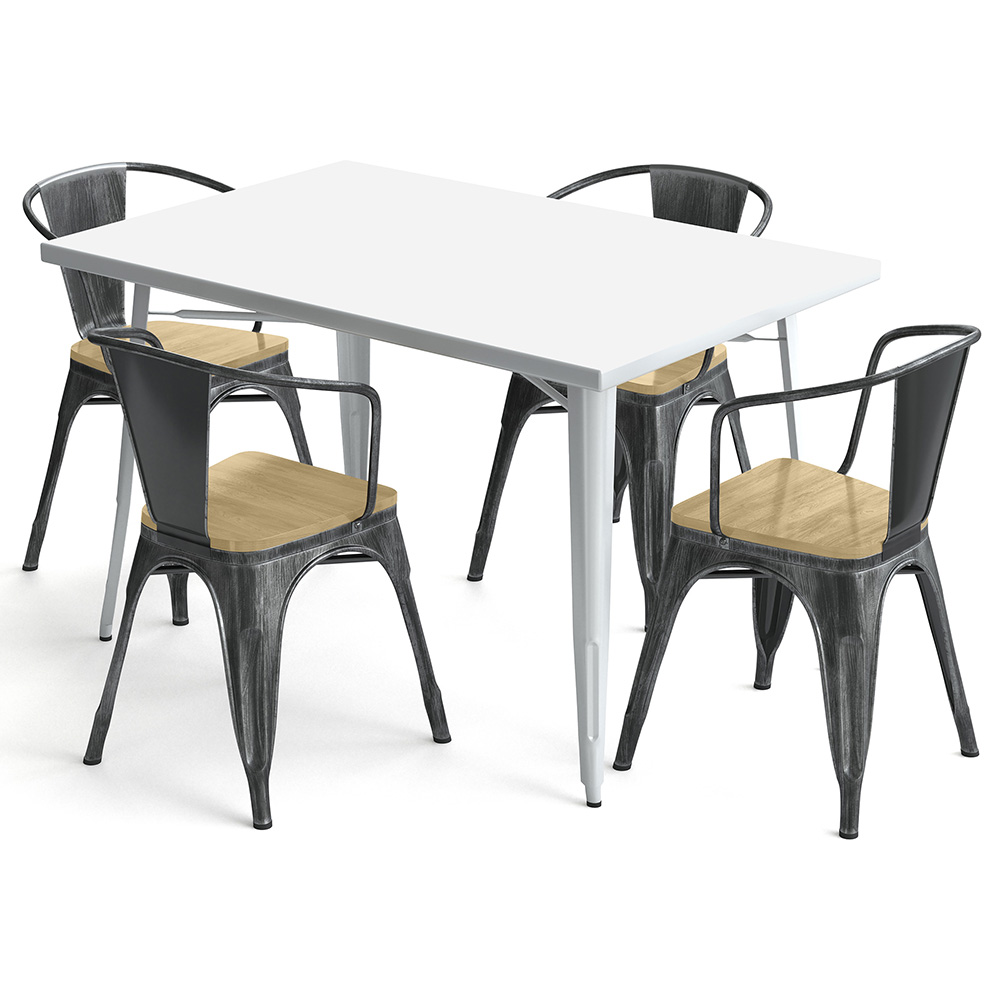Tisch und X4 Stuhl-Set mit Armlehne Bistrot Metalix Industriedesign Metall und helles Holz - Neuauflage